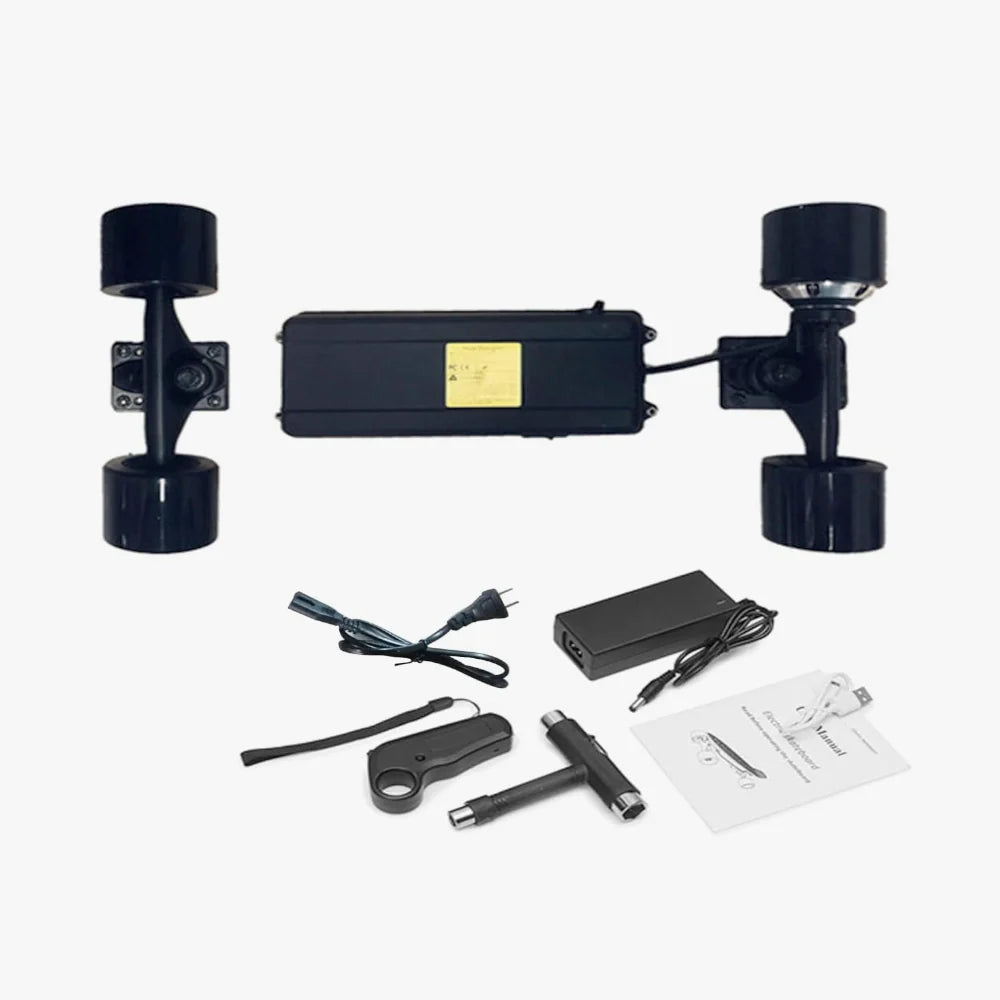 Grâce à son moteur brushless et ses roues en PU, ce kit donne un second souffle à ton skate classique. Il encaisse bien le poids, offre une belle accélération et une bonne autonomie pour te balader en ville. Avec son installation simplissime, c'est l'upgrade parfait pour se mettre à la glisse urbaine électrique. Prêt pour le ride ? 🛹⚡