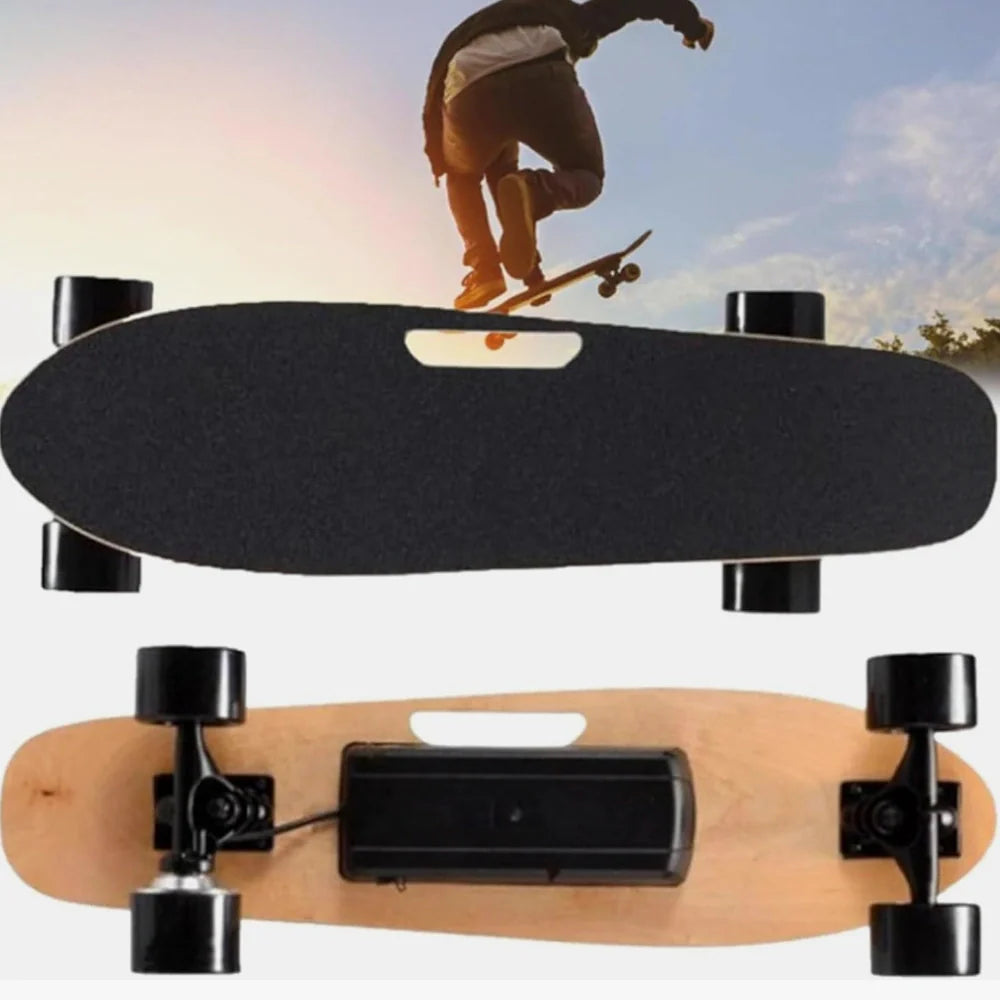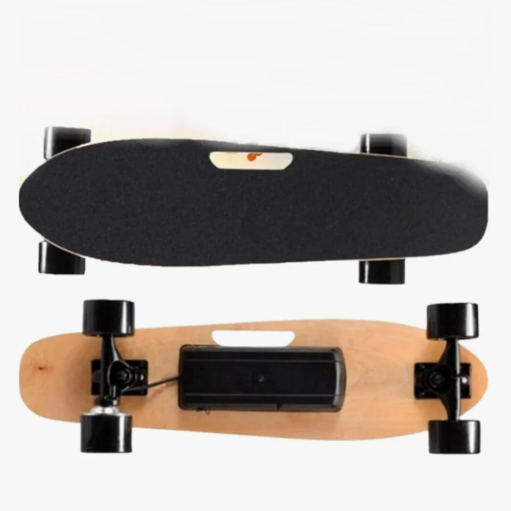 Voici le skateboard électrique qu’on voudrait tous avoir sous le pied, un petit bijou pour les trajets rapides, les sensations à la cool, et les balades du soir façon "je roule mais je bosse pas mes mollets". Avec un moteur de 350 W, tu grimpes à 22 km/h sans forcer, et tu files sur 8 km avec une seule charge. Le plateau en érable ? Solide, léger, prêt à avaler les trottoirs. Tu peux y monter jusqu’à 150 kg sans que ça bronche. En plus, sa télécommande sans fil te laisse gérer tout : accélérer, freiner, changer de mode. C’est presque comme piloter une petite navette spatiale… mais au sol 😎.